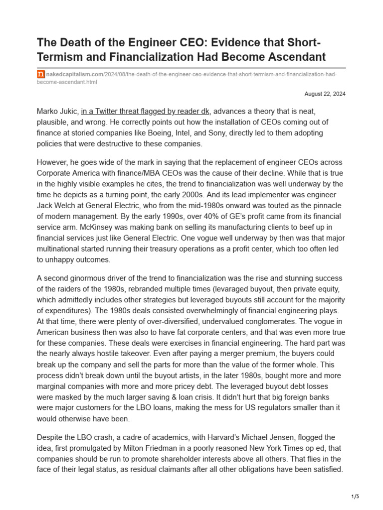The Death of The Engineer CEO Evidence That Short-Termism and ...