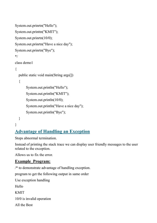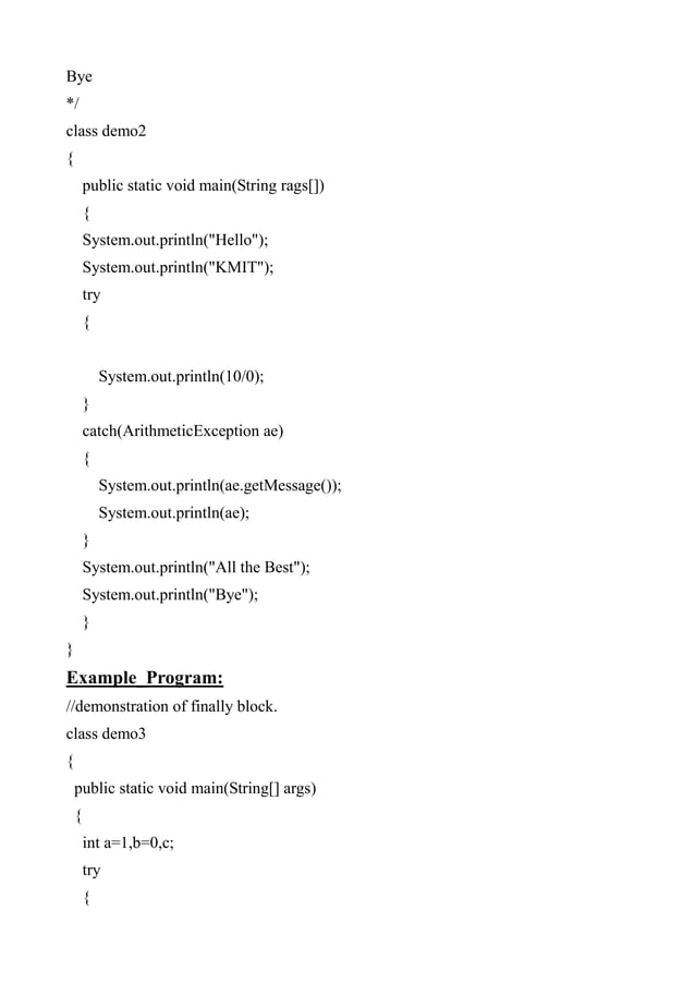 EXCEPTION HANDLING Notes | PDF | Control Flow | Method (Computer ...