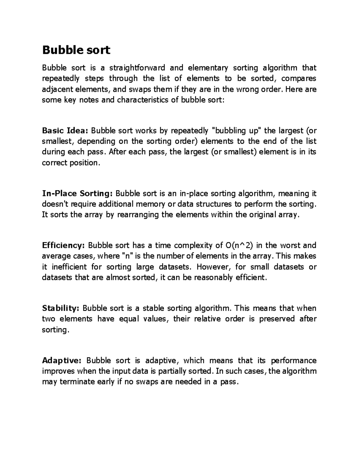 BUB101: Bubble Sort Algorithm Overview and Key Characteristics - Studocu