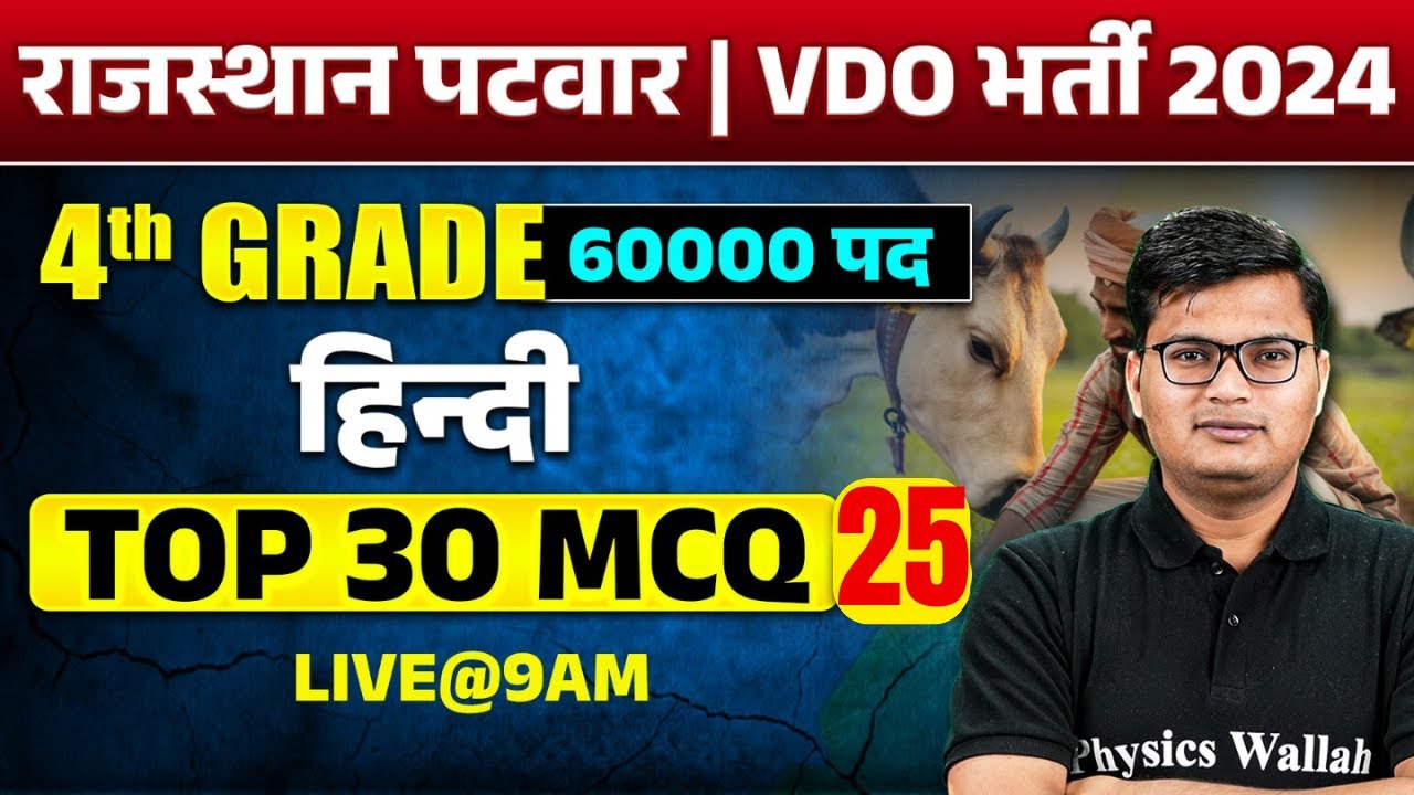 Rajasthan Patwari Hindi Class 2024 | Hindi Top 30 MCQ #25 | 4th Grade ...