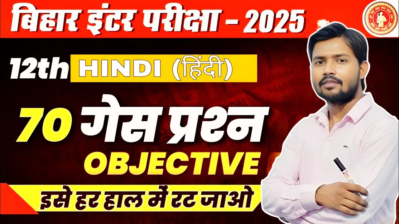 Class 12th Hindi 70 Vvi Objective Question 2025 || Most Vvi Objective ...