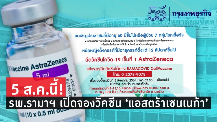 5 ส.ค.นี้! รพ.รามาฯ เปิดจองวัคซีน 'แอสตร้าเซนเนก้า' เข็มแรก ผู้สูงอายุ ...