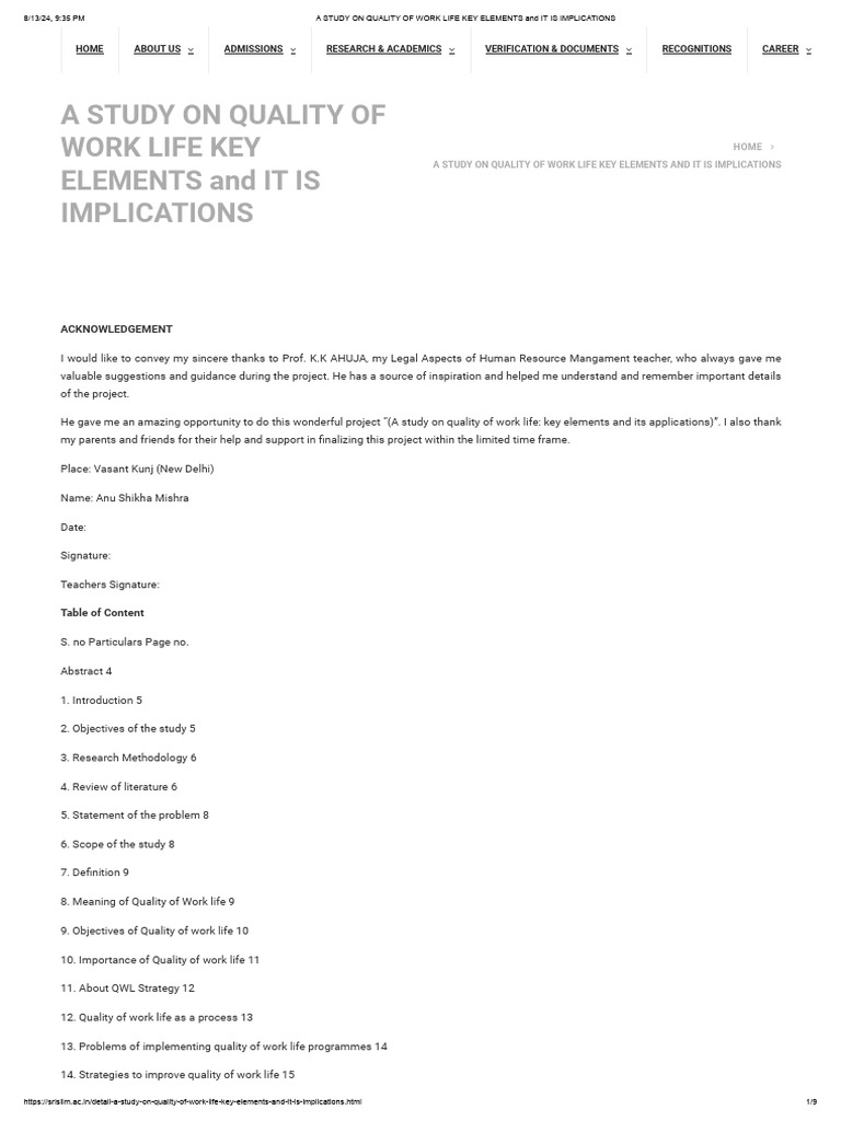 A Study On Quality of Work Life Key Elements and It Is Implications ...