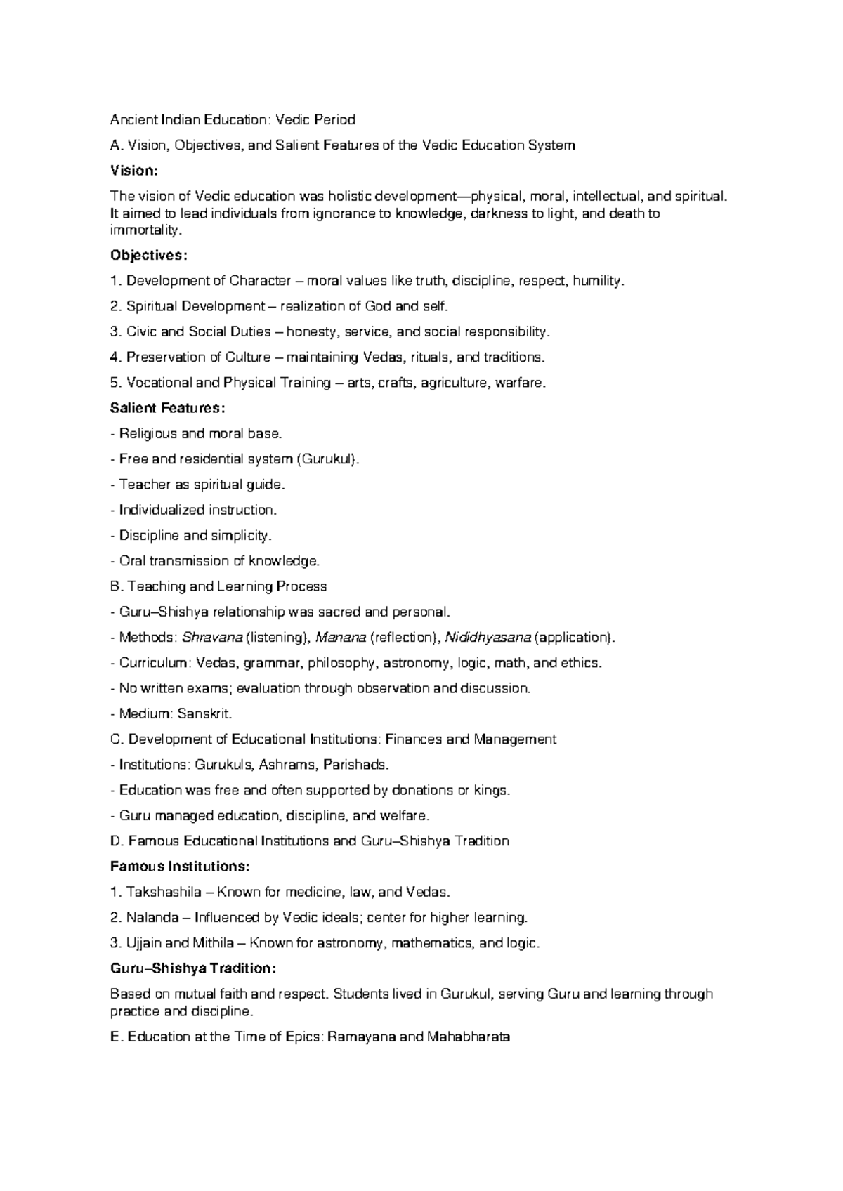 Ancient Indian Education: Vedic Period Overview and Key Features - Studocu
