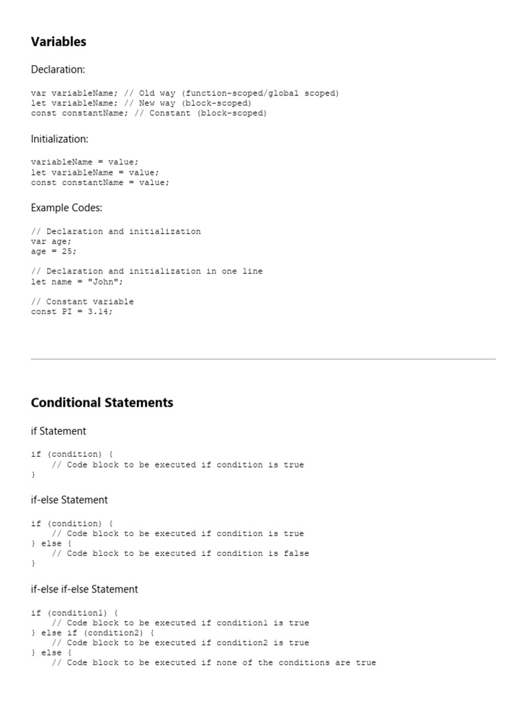 Variables and Conditional Statements CheatSheet | PDF | Computing ...
