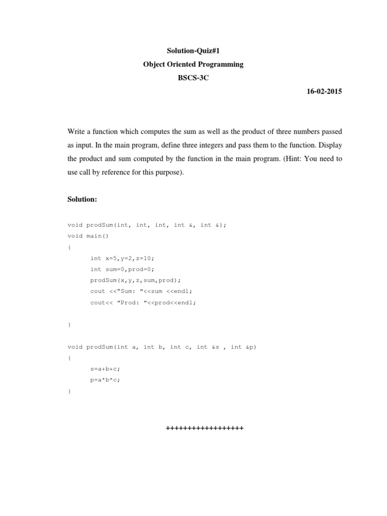 Solution-Quiz#1 Object Oriented Programming Bscs-3C 16-02-2015 | PDF