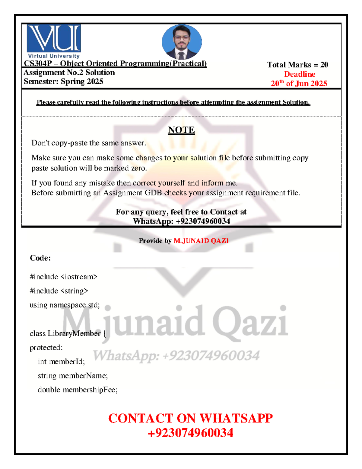 OBJECT ORIENTED PROGRAMMING ASSIGNMENT # 02 UOL - Advanced Object ...