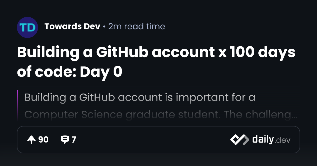 Building a GitHub account x 100 days of code: Day 0 | daily.dev