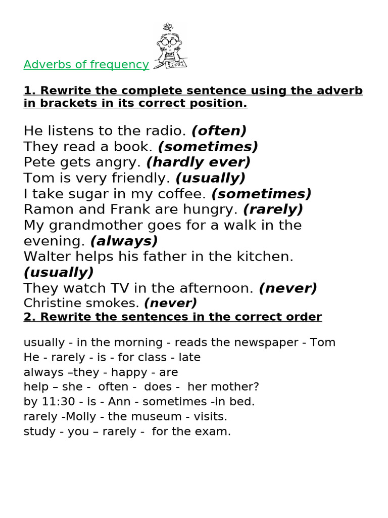 Adverbs of Frequency - exercise sheet 1 worksheet | Adverbs, Learn ...