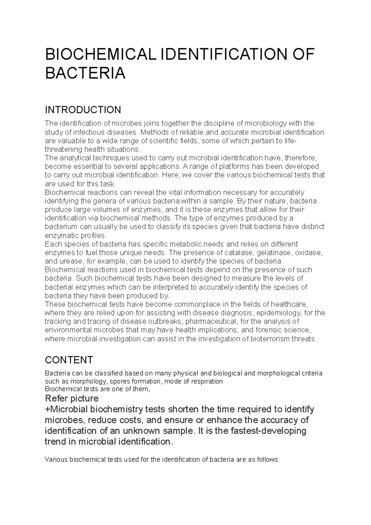 (PDF) Identification of Bacteria by Biochemical Reactions