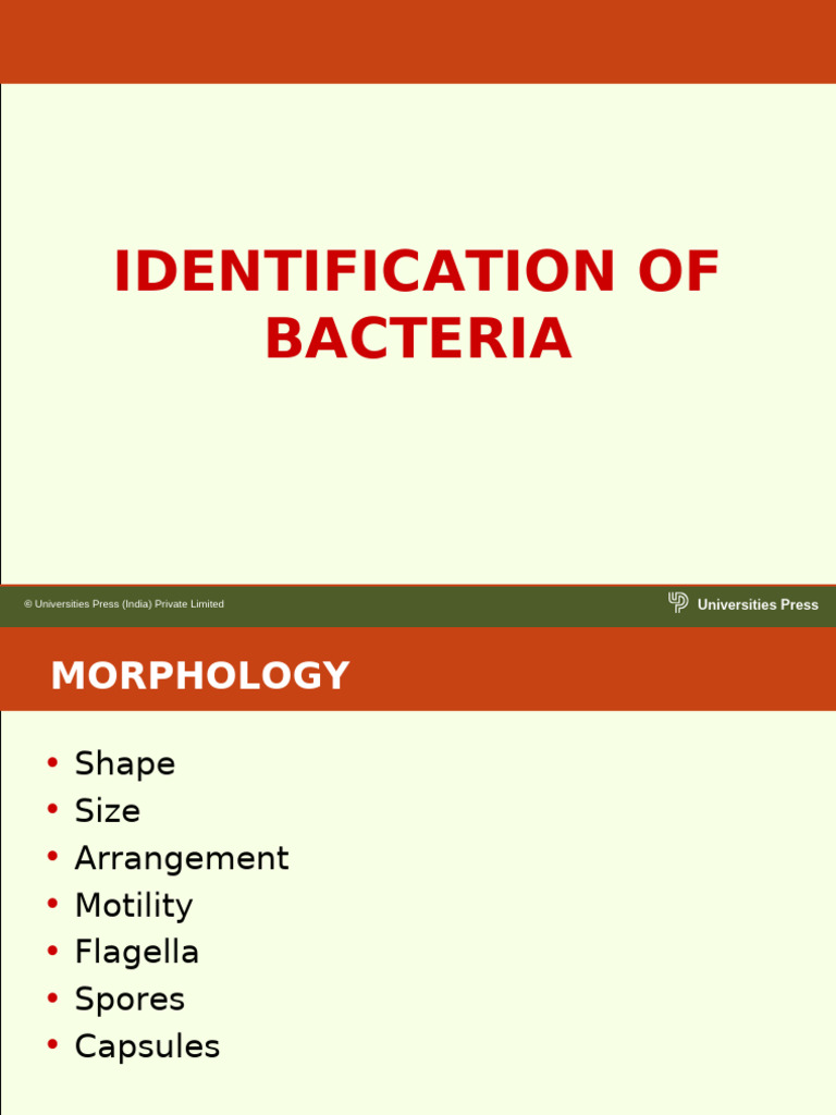 Bacterial Identification Techniques Overview | PDF | Bacteria | Metabolism