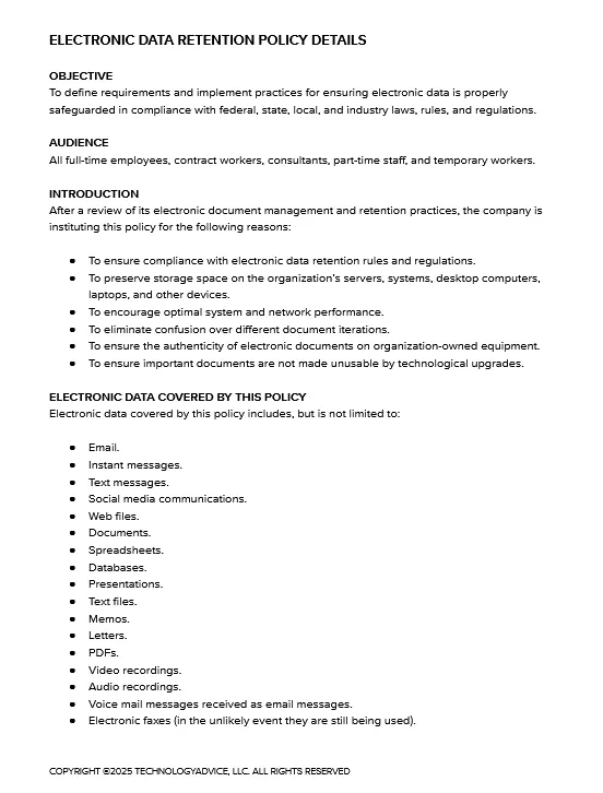 Electronic Data Retention Policy - TechRepublic