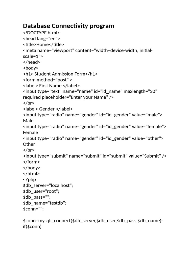 Database Connectivity Programs | PDF | Databases | Data