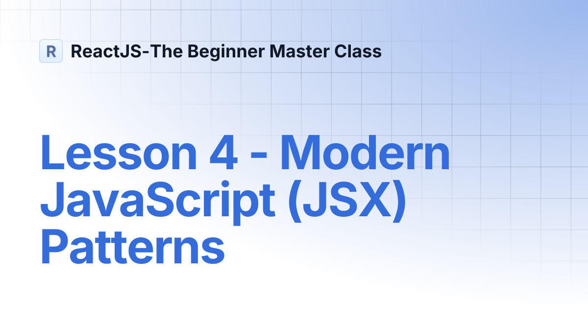 Based on this image's title: “Lesson 4 - Modern JavaScript (JSX) Patterns | ReactJS-The Beginner ...”