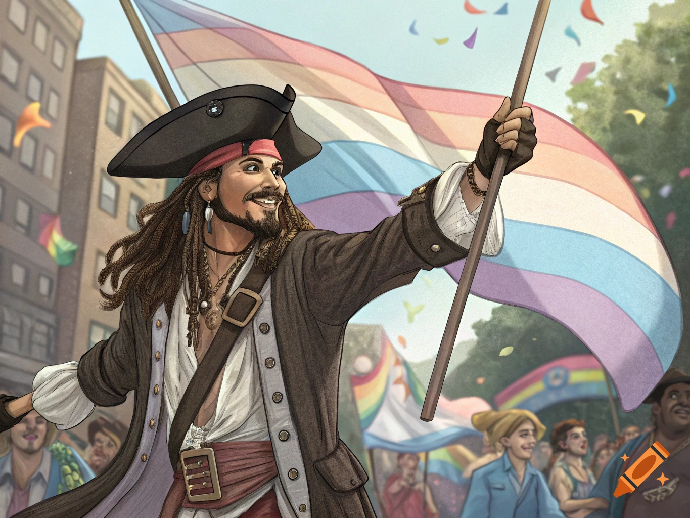Illustration of Jack Sparrow in a pride parade, proudly holding a ...