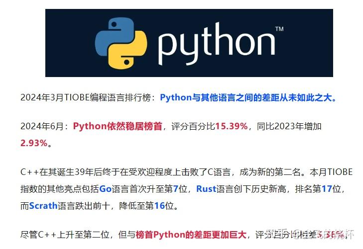 2024年6月编程语言排行榜,Python与其他语言之间的差距依然如此之大! - 知乎
