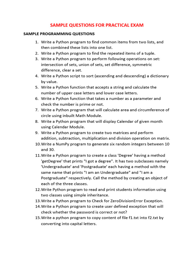 Python Practical Exam Sample Questions | PDF | Python (Programming ...