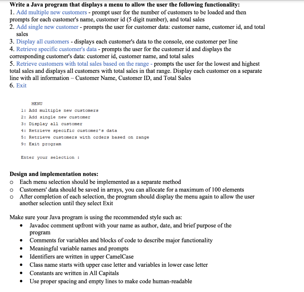 Solved Write a Java program that displays a menu to allow | Chegg.com