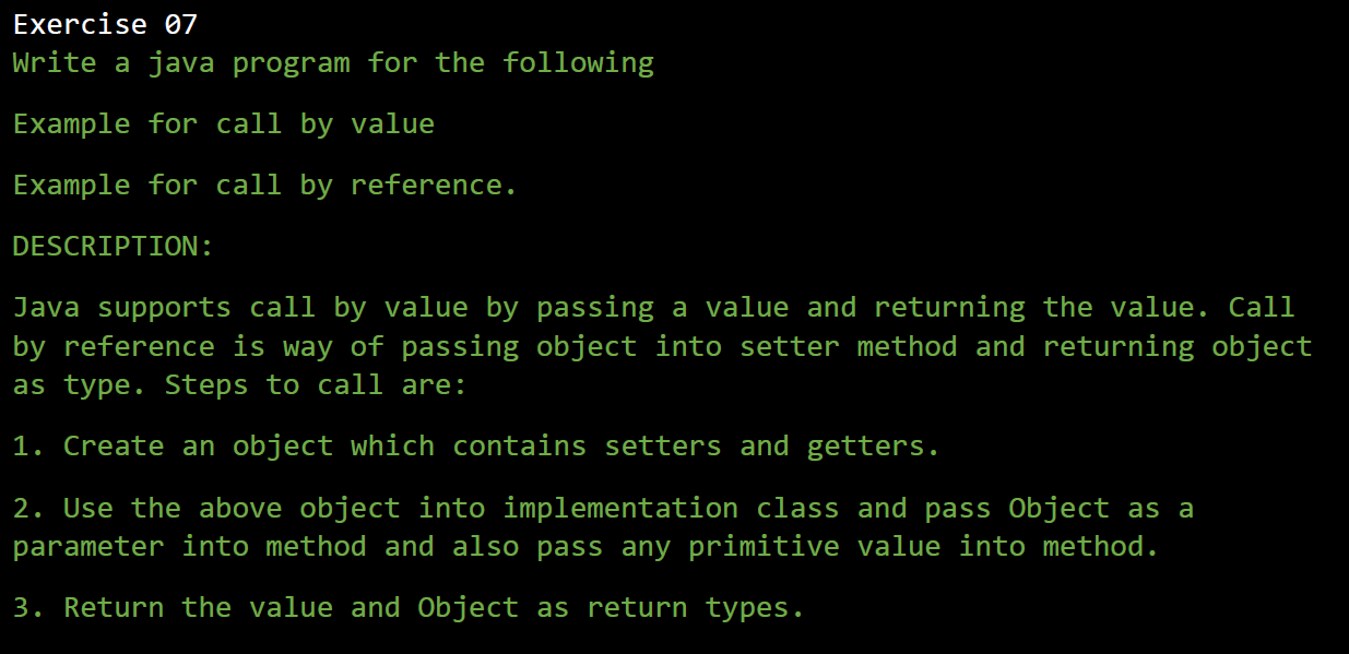 Based on this image's title: “Solved Exercise 07 Write a java program for the following | Chegg.com”