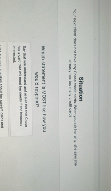 Solved SituationYour next client does not have any Chase | Chegg.com