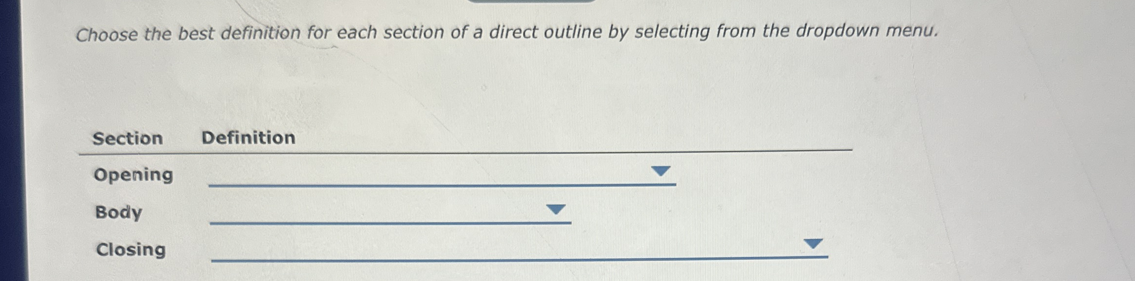 Solved Choose the best definition for each section of a | Chegg.com ...