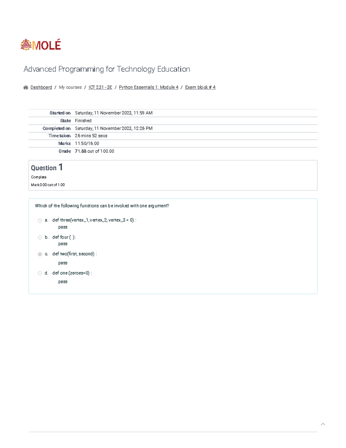 Exam-block-4 -Attempt-review - Dashboard / My courses / ICT 231 - 3E ...