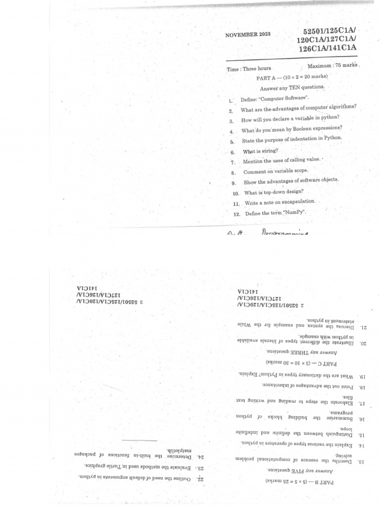 Python Programming - First Sem Exam Sample Paper 2023 - Studocu