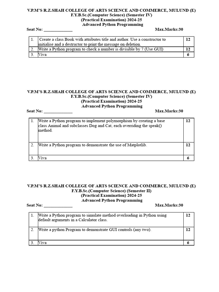 Python Programming Practical Exam Guide | PDF | Matrix (Mathematics ...
