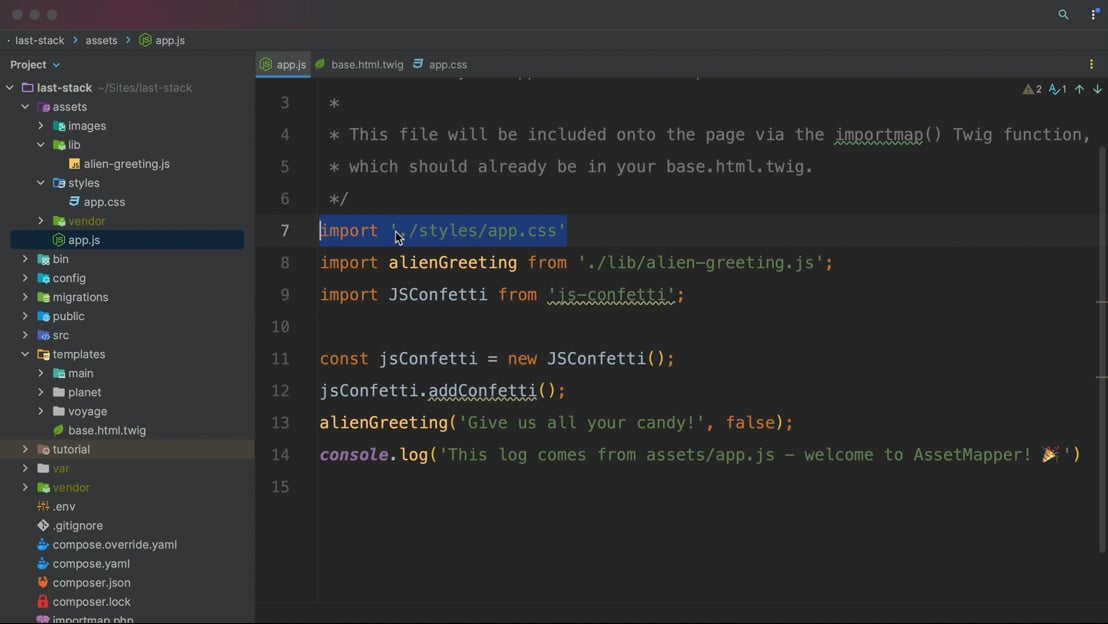 CSS & JavaScript with Asset Mapper > Cosmic Coding with Symfony 7 ...