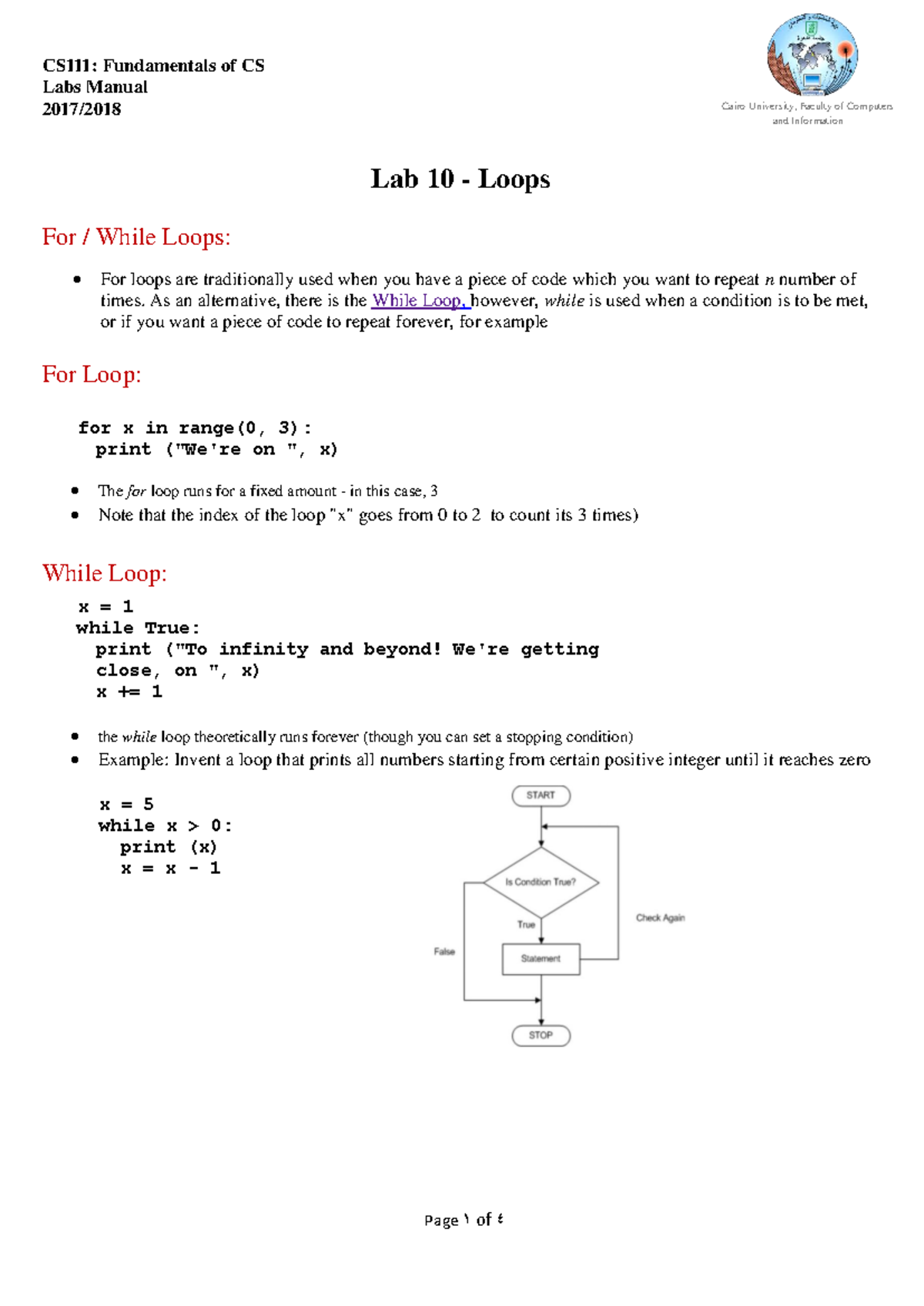 CS111 2020 Lab 12: Python Loops - For and While Loop Concepts - Studocu