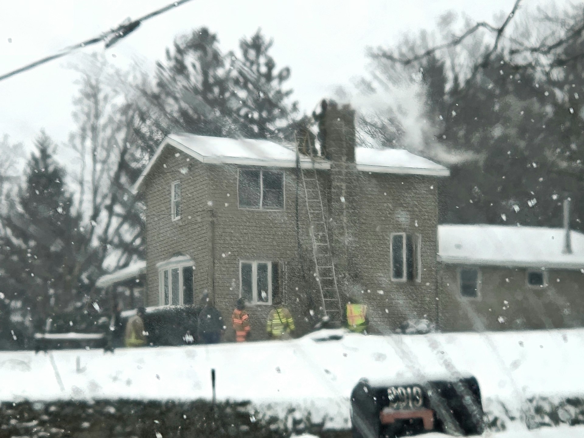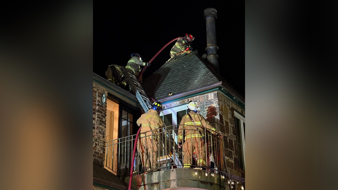 Based on this image's title: “Crews from multiple counties respond to chimney fire”