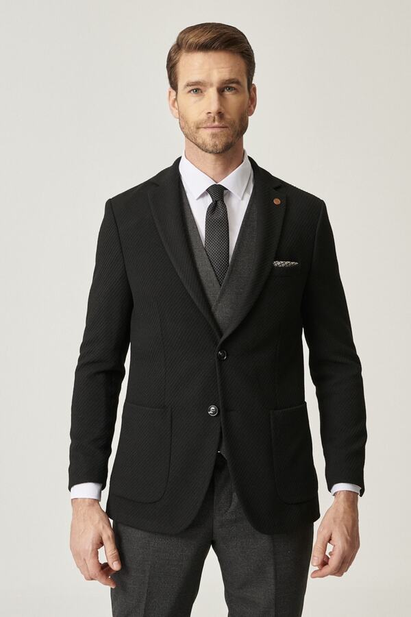 Altınyıldız Classics Men's Black-gray Slim Fit Slim Fit Combined Vested ...