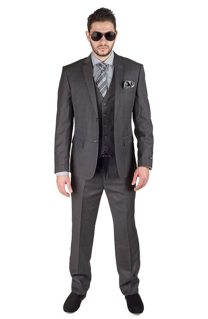 Slim Fit Suit 3 Piece 2 Button in Medium Gray | Suits Outlets Men's Fashion