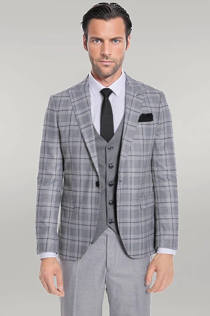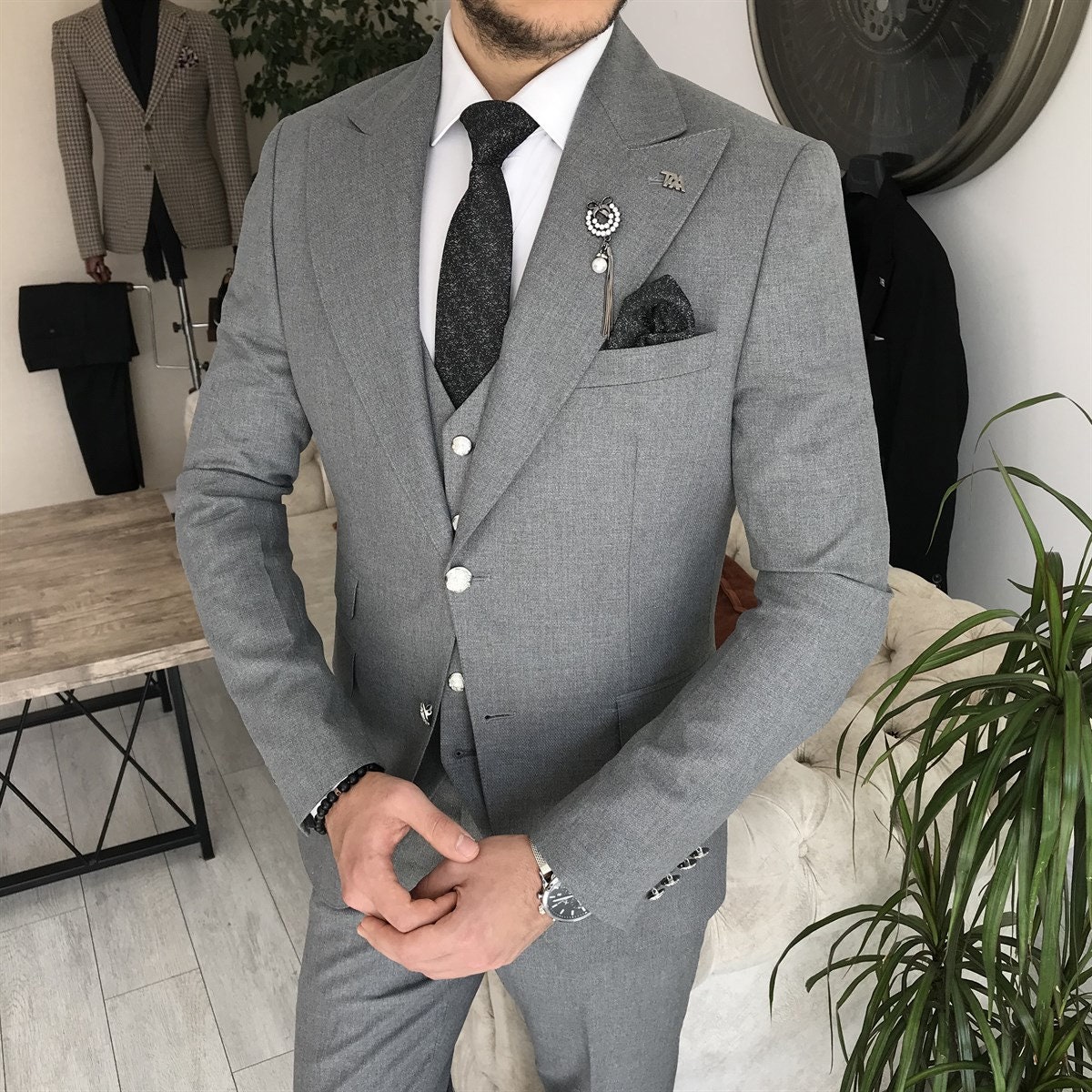 Men’s Premium Mid Gray Slim Fit Three Piece Two Button Suit with ...