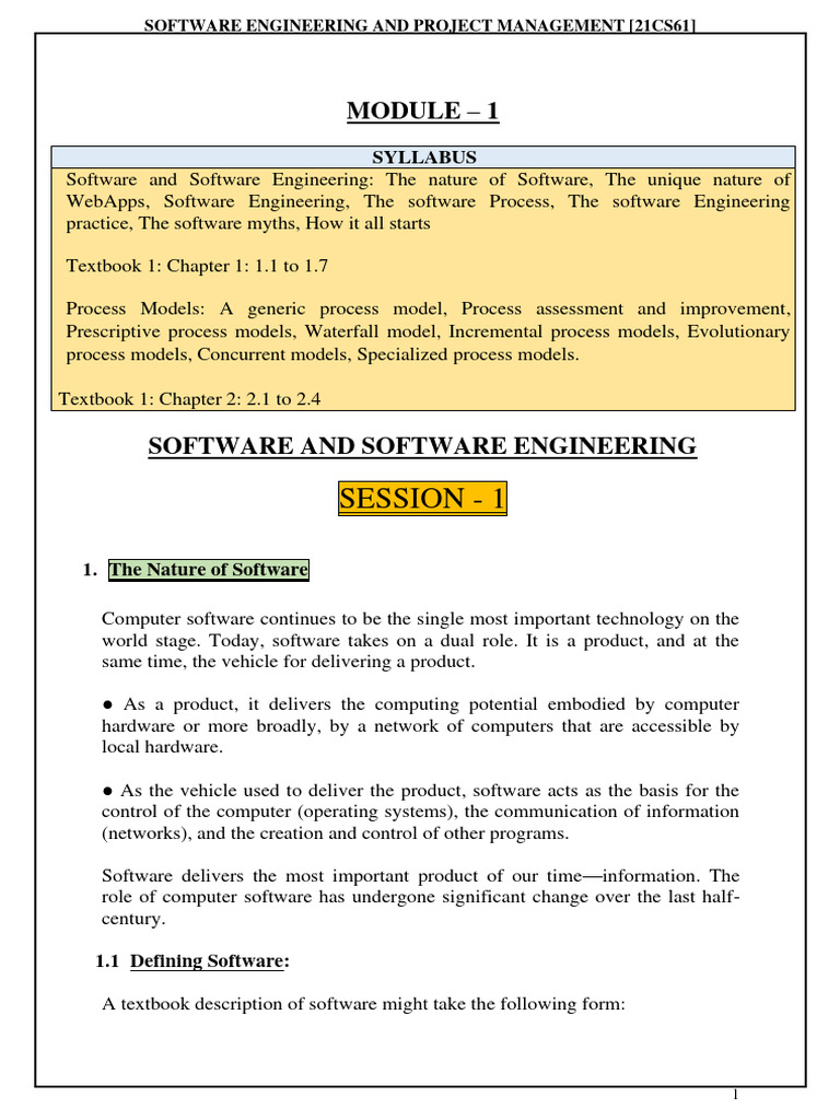 Module - 1 Notes - SEPM (21CS61) | PDF | Formal Methods | Software ...