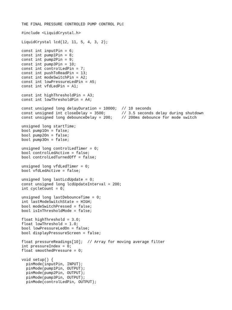 The Final Pressure Controled Pump Control PLC | PDF | Integer (Computer ...