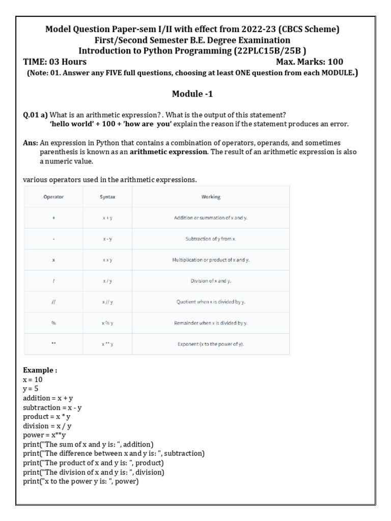 22plc151 QB Module 1 Updated | PDF | Python (Programming Language ...