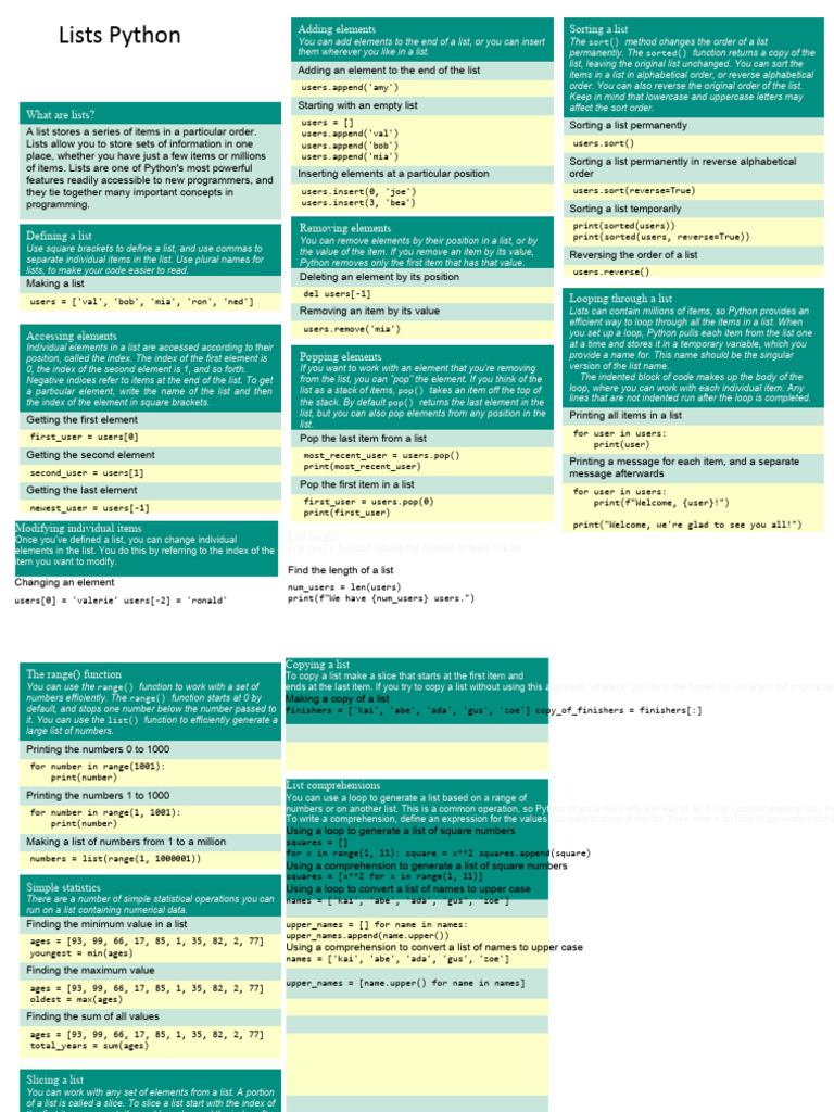SOLUTION: Beginners python cheat sheet pcc lists - Studypool