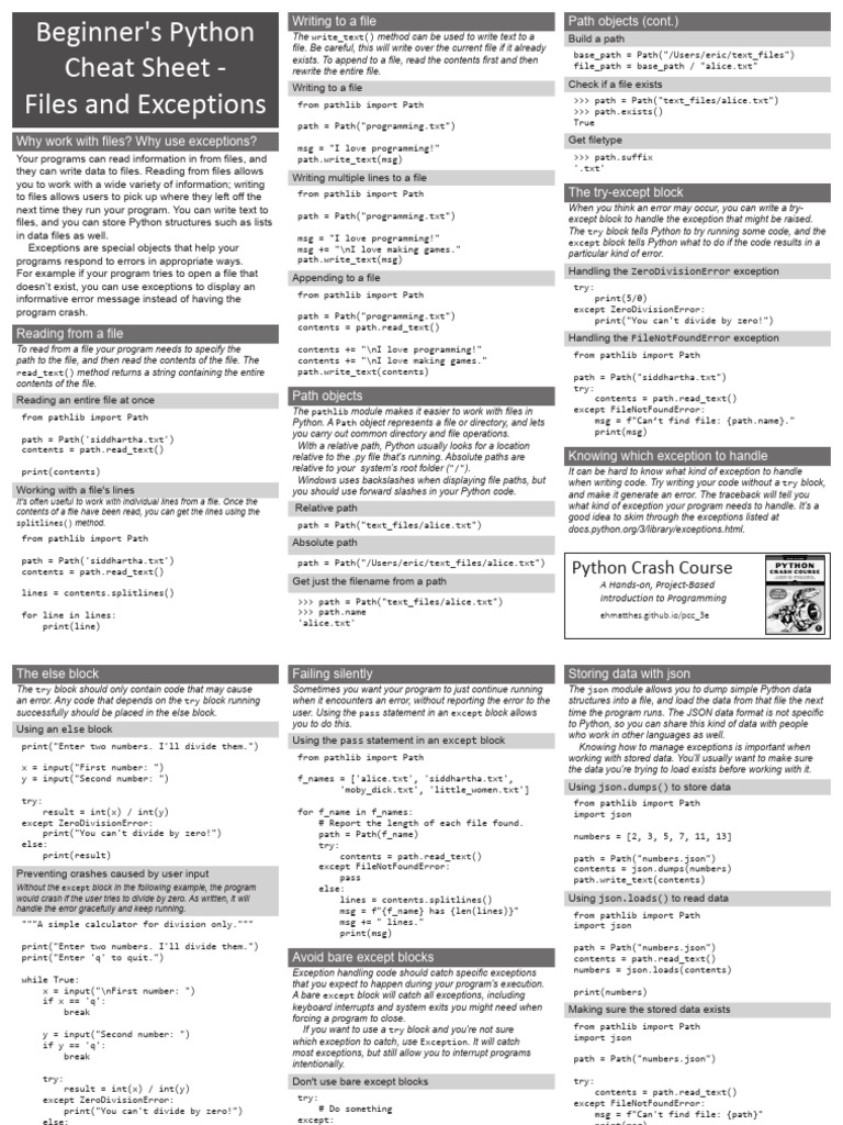 Beginners Python Cheat Sheet PCC Files Exceptions BW | PDF | Computer ...
