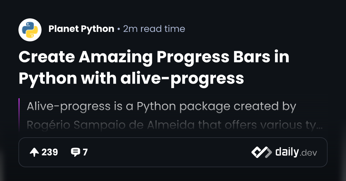 Create Amazing Progress Bars in Python with alive-progress | daily.dev