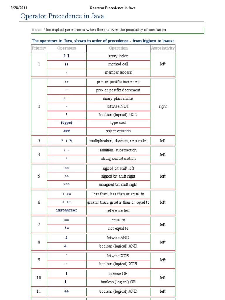 Java Operator Precedence Chart : Ashur Cherry : Free Download, Borrow ...