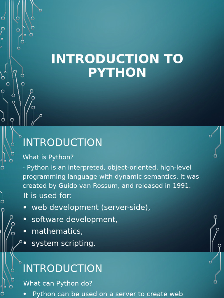 Introduction To Python | PDF | Python (Programming Language) | Systems ...