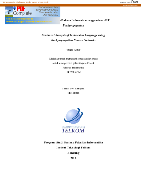(PDF) Sentimen Analisis Bahasa Indonesia menggunakan JST Backpropagation