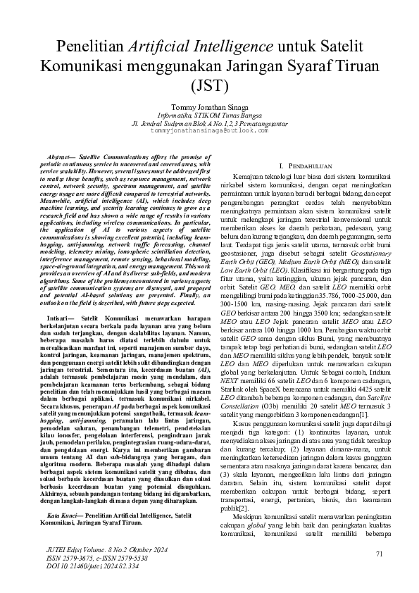 (PDF) Penelitian Artificial Intelligence untuk Satelit Komunikasi ...