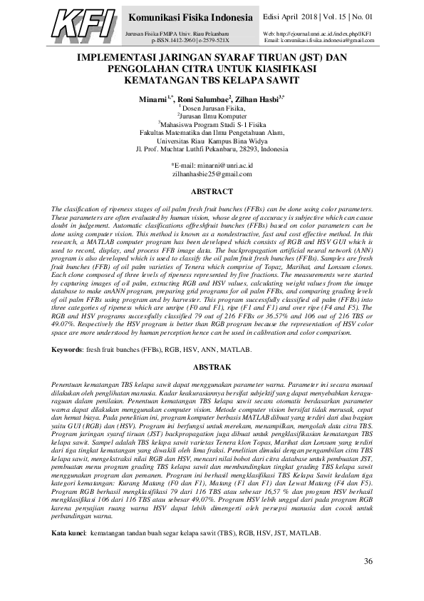 IMPLEMENTASI JARINGAN SYARAF TIRUAN (JST) DAN PENGOLAHAN CITRA UNTUK ...