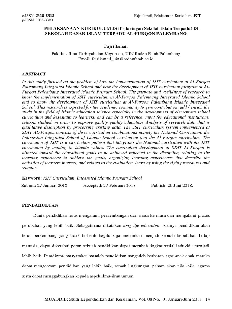 Implementasi Kurikulum JSIT di SDIT Al-Furqon | PDF | Curriculum