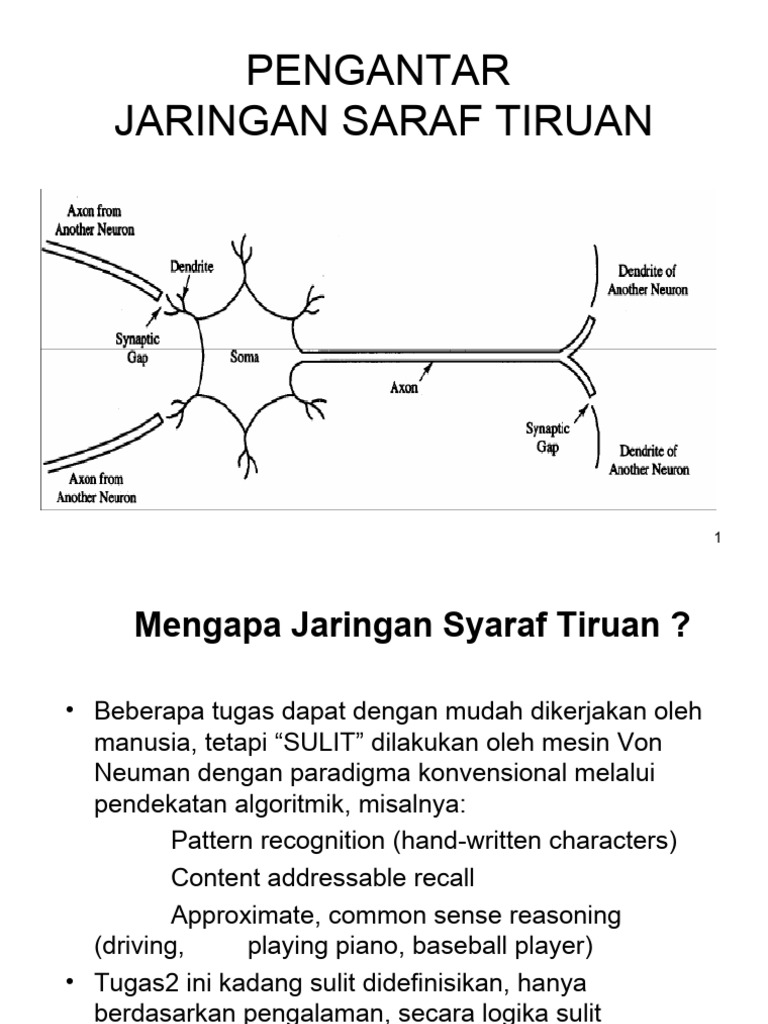PENGANTAR JARINGAN SYARAF TIRUAN JST JARINGAN SYARAF BIOLOGIS