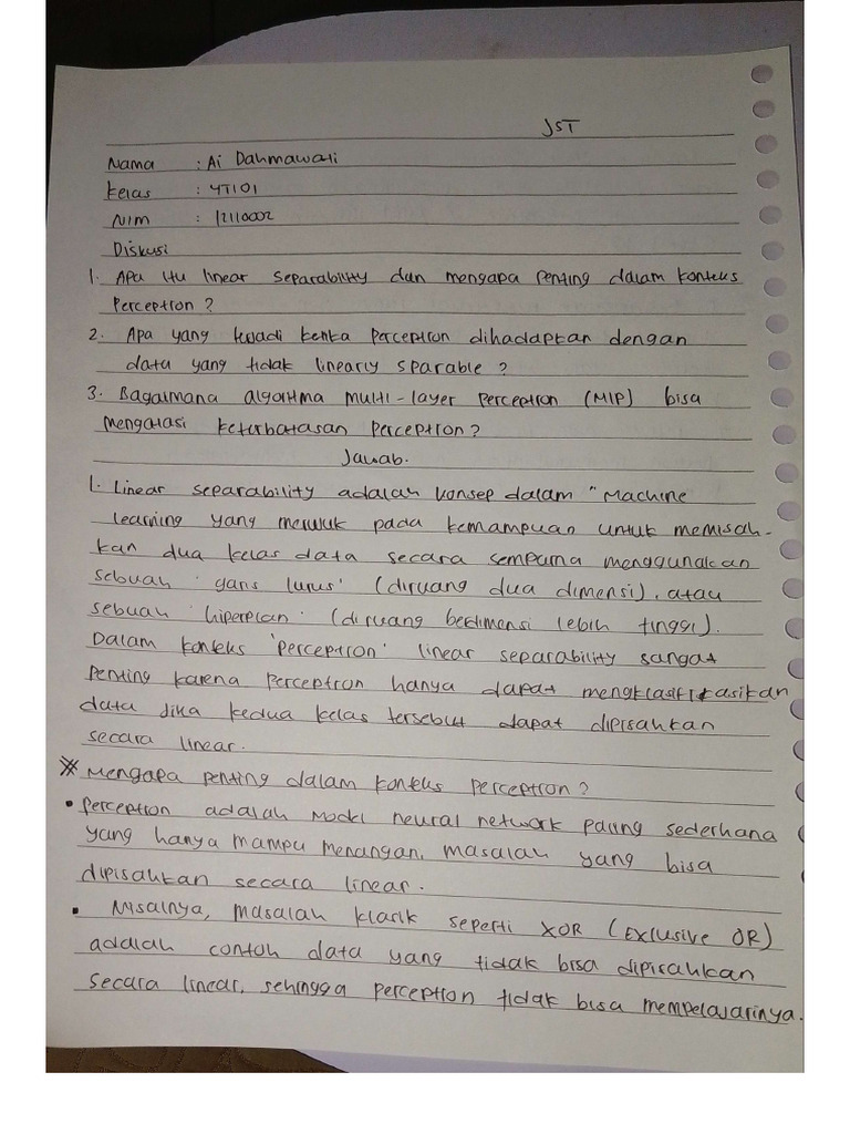 Ai Dahmawati - 12110002 - 4TI01 - Jaringan Syaraf Tiruan (JST) | PDF