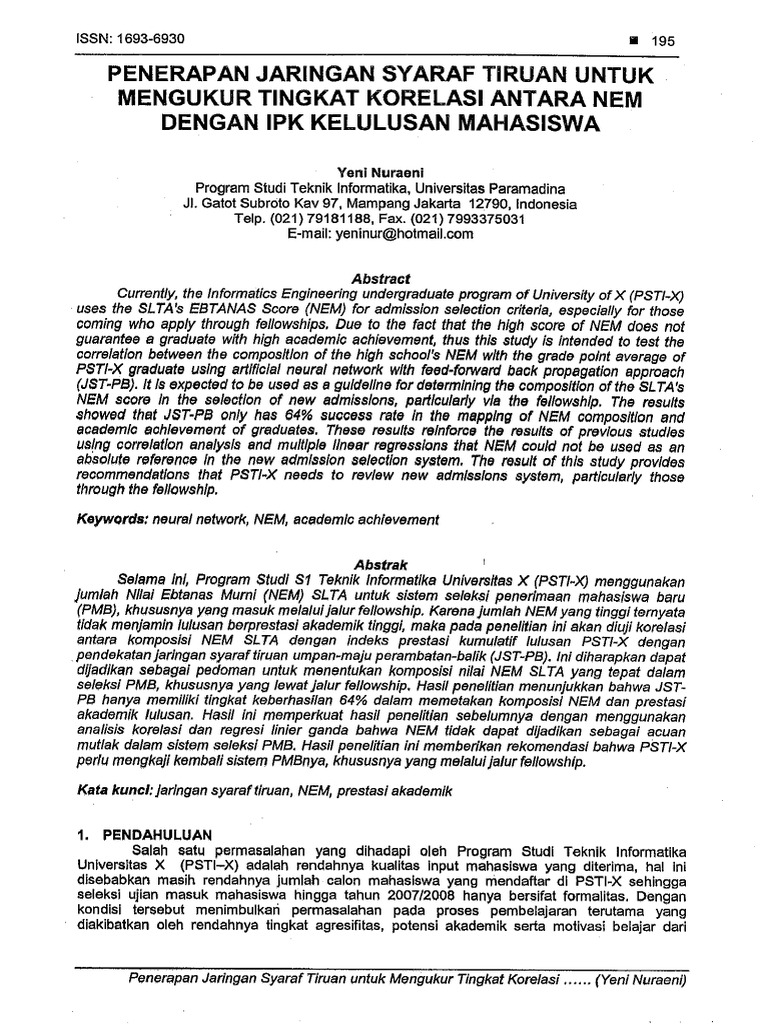 Penerapan JST Utk Menentukan Korelasi NEM Dan IPK | PDF