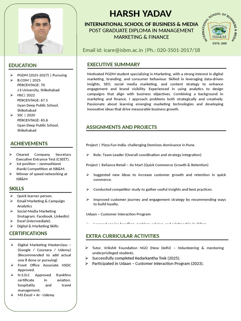 Harsh Yadav Cv | PDF | Marketing | Social Media Marketing